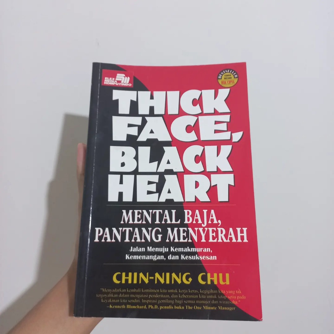 okeh gaes, dikesempatan kali ini saya ingin ngebahas bukunya karya Chin Ning Chu - Thick Face Black Heart ato dalam bahasa indonesianya Muka tebal Hati hitam. jika dilihat dari terjemahannya ini buku terkesan frontal dan kasar ya. saya sendiri tau buku ini dari channel youtubenya pria seratus persen - 4 buku TERLARANG yang WAJIB Dibaca Cowok! . dimana di video tersebut menuliskan tentang buku terlarang untuk dibaca tapi direkomendasikan, maksudnya terlarang itu buku tersebut agak provokatif kali yaa. salahsatu dari 4 buku tersebut adalah buku dengan judul Thick Face, Black Heart karya Chin-Ning Chu. penulis sendiri menyimpulkan bahwa Thick Face, Black Heart ini maksudnya adalah orang yang memiliki mental baja = thick face dan pantang menyerah = black heart. maksud dari buku tersebut sendiri adalah bahwa kita akan diajarkan untuk memiliki mental baja, pantang menyerah. pada bab awal kita akan disuguhkan definisi dari mental baja pantang menyerah. yakni bahwa mental baja itu maksudnya adalah kita tidak mendengarkan pendapat orang lain selama kita yakin bahwa jalan yang kita ambil tersebut benar. kita harus memiliki mental baja untuk mempertahankannya dengan tidak mengindahkan pendapat orang lain. karena kebanyakan dari kita kan emang hidupnya tergantung dari penilaian orang lain. kita takut terhadap penilaian orang lain terhadap kita, misal kita takut tidak disukai orang lain, akhirnya kita ikutin apa mau mereka. padahal menurut buku mental baja pantang menyerah menyarankan agar kita ya jadi diri kita sendiri selama itu dalam jalan yang benar. dan pantang menyerah sendiri menurut penulis adalah mampu memaksa orang lain untuk melakukan apa yang kita inginkan, baik dengan sukarela maupun dengan paksaan. nah dibuku ini dijelaskan menganai kaidah-kaidah mental baja pantang menyerah yang penulis sampaikan dengan menggunakan filosofi dari china dan hindu budha nya.
